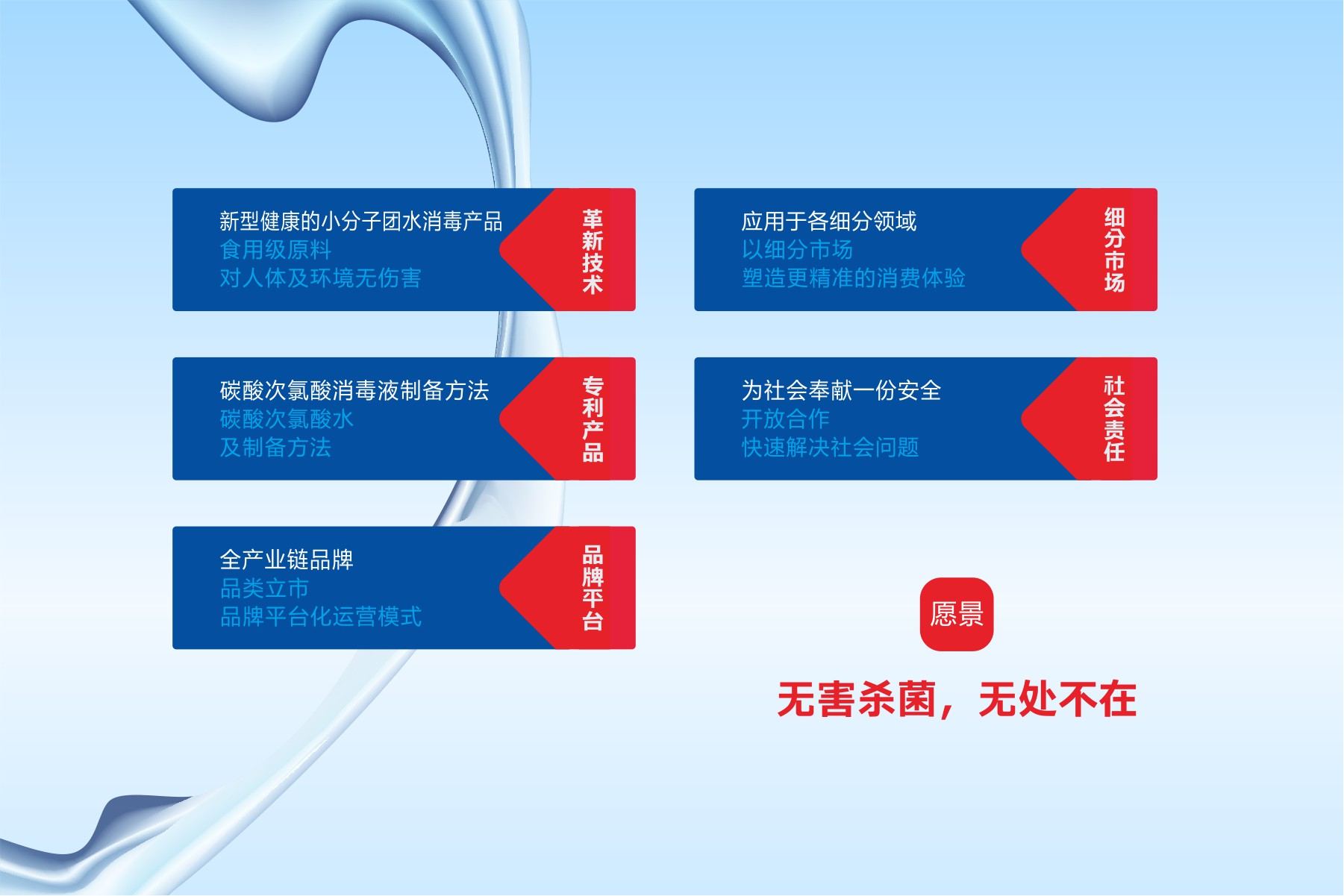 颠覆性技术产品,奇缺的产品方案,是这个新事业的至高起点。这项【碳酸次氯酸】技术的唯一性,先进性,注定了其替代传统产品的【战略】使命。
